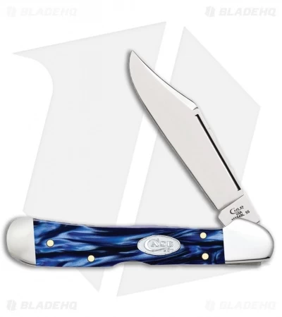 The 23438 CopperLock pocket knife from Case Knives is outfitted with a Blue Pearl SparXX Kirinite handle, nickel silver bolsters, and a Case shield logo. It comes equipped with a durable clip point blade and a reliable lock back mechanism. (101549L SS)