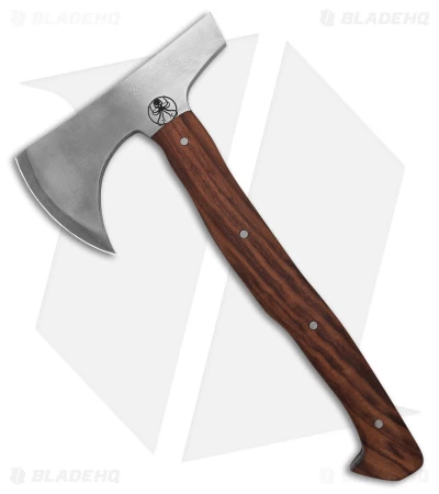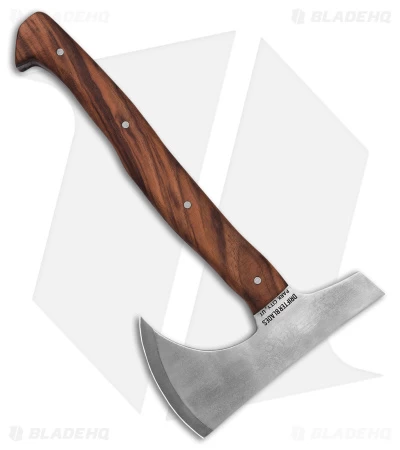 The term Bruin means “bear” in English folklore, and this hefty tomahawk lives up to the name! In case you thought Drifter Blades only made knives, prepare to be amazed by this beast of a tomahawk. The high carbon steel holds up in high stress conditions and the blade has a full 3.50″ of cutting edge. The tough black walnut handle has titanium pins for strength and durability. The slightly bearded profile makes carving a breeze when you’re out practicing your bushcraft skills, and the contoured handle stays firm in your grip when you’re chopping wood or setting up your campsite. We can’t help but admire the beauty of a hawk from Drifter Blades.