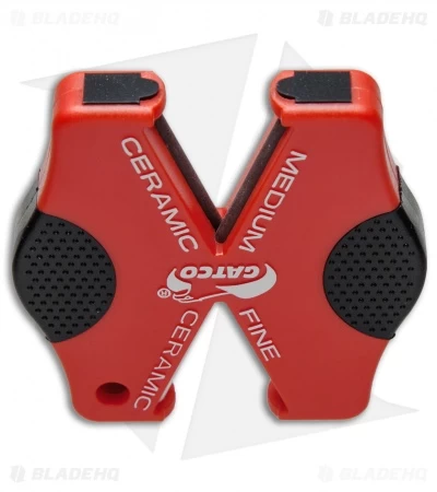 The Gatco Super Micro features a compact design with a dual sharpening system that offers medium and fine ceramic sharpening rods. It easily sharpens plain and serrated blades with preset sharpening angles. Simply pull the knife through the medium grade rods to reshape the bevel of a dull blade, then pull through the fine grade rods to finish the blade with a fine polished edge. Item includes a rubber grip and a keychain/lanyard hole for convenient use and carry.