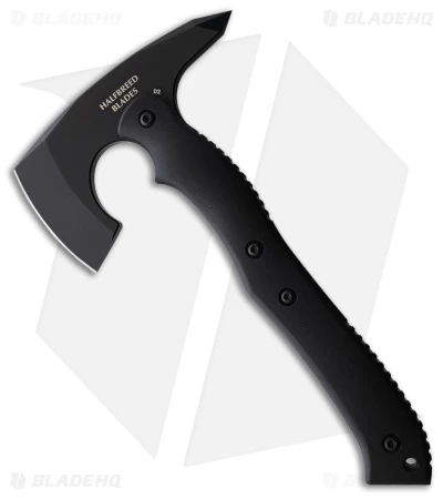 - Black teflon coated tomahawk-style axe with a faceted tanto spike.