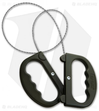 The Old Timer Wire Saw features plastic grip handles and a 24″ length of 8-strand interwoven stainless steel wire.