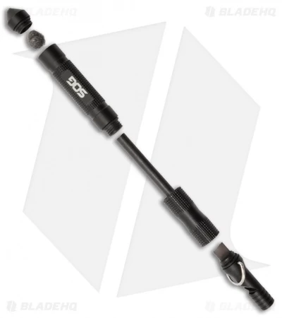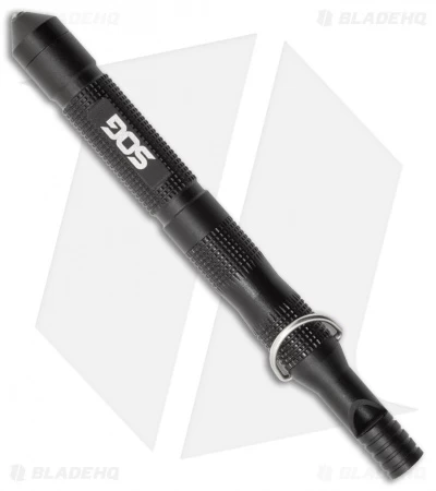 The SOG Flint is a compact tool packed with survival and defensive features. Its sturdy aluminum frame is outfitted with grip enhancing knurling and a black anodized finish. At the size of a pencil, the Flint is easy to carry in a pocket, bag, or emergency kit.