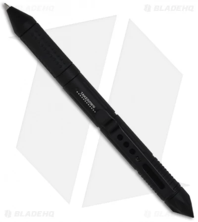 The Takedown tactical defense pen features a black anodized aluminum body with a breaker tip. The rubber grip aids in writing and other use. The retractable pen tip simply twists to open and close. The pen writes well and has a replaceable ink cartridge (black). If you need a replacement ink cartridge click here. Pocket clip for easy carry. This is a great self-defense tool in a package that makes it easy for everyday carry.